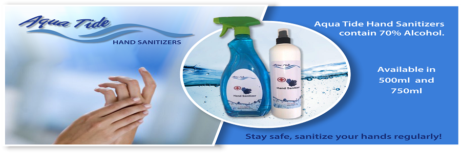 Aqua Tide has heeded to the call of our nations challenges in terms of Covid19 and adapted its portfolio to formulate and supply Hand Sanitisers as well as source and supply Facial Masks and Protective Gloves.